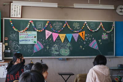 黒板には担任の先生からのメッセージが書かれていました。
