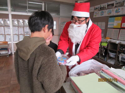 最後には、サンタクロースがクラスにやってきて、みんなにプレゼントを渡す場面も・・・