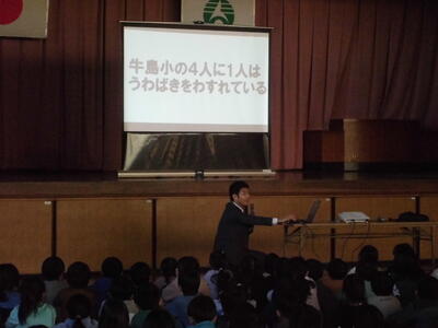 本日、5,6校時に6年の各クラスで、埼玉県ネットアドバイザーの方を講師にお招きし、ネットトラブルについての出前授業を行いました。