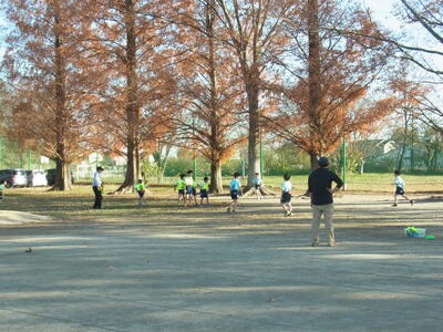 見に行ってみると・・・どうやら5年生が体育で「フラッグフットボール」の授業をしていたようです。
