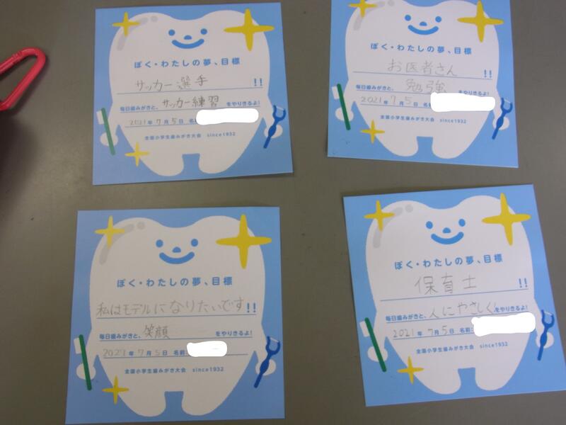 明日は5年1組、木曜日は5年2組が実施します。全クラスの歯みがき大会が終了したら「ほっとけんしつ」を配付します。ご家庭で復習をしながら歯と口の健康を継続していきましょう。