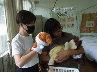 昼休みに6年生が保健室に来室した際、保健室の赤ちゃん人形をみて「かわいい」、「触ってみたい」というので抱っこしました。見た目より意外と重い赤ちゃんがお母さんのおなかに入っていることに子供達も驚いていました。保健室のぬいぐるみで赤ちゃんをあやしたり、名前をつけたりしてかわいがってくれました。