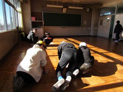 担当の先生と1年生たちから、冬休み中の生活についてのお話です。