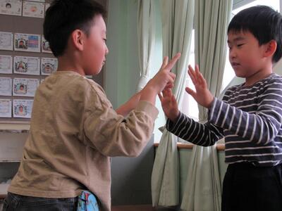 4拍子、3拍子など、友達とリズムを取っていきます。