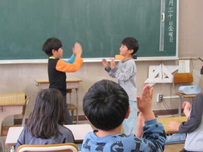 ↑ 2年生 ↓ 3・4年生 こちらも、高学年のようなリズムにあった手拍子です。