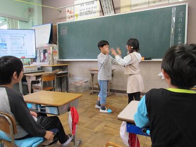4年生は、役割演技(ロールプレイ)をしながら、お互いの気持ちを考えています。