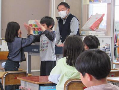 先生に指名され、代表児童が素敵なリズム打ちを見せています。