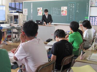 6年生は、教育実習生と道徳の学びを進めていますよ。