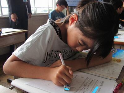 みんな、気持ちを落ち着けて、真剣に書いていますね。