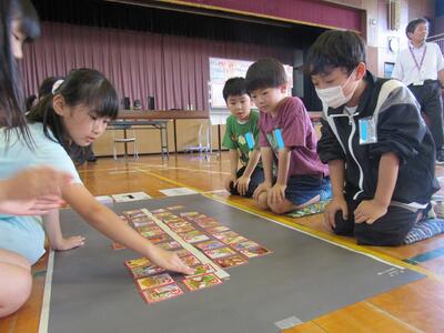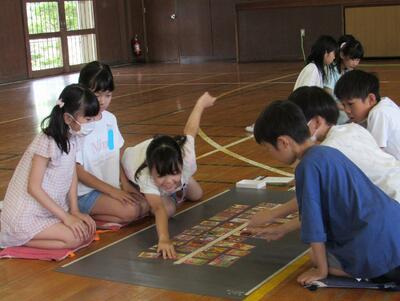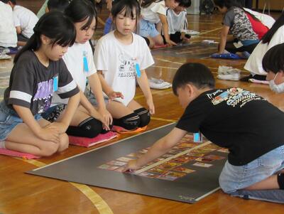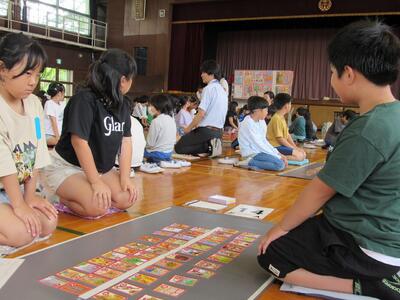 事前にいただいた読み札の一覧表に目を通し、読み札の句を学習してきた児童も多いです。