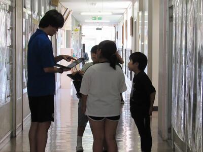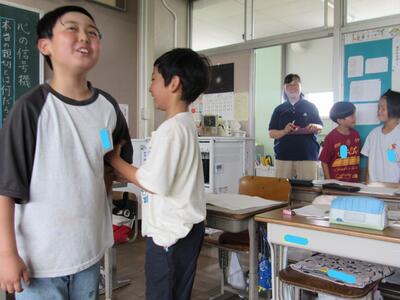 昼休み、先ほどの4年生に1人が加わり、さらに6年生がやって来ています