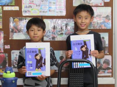 5年生の2人は、色々な教科の学習を自主的に進めていますよ。