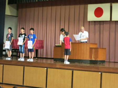 1学期の表彰朝会を行いました。1学期には、陸上関係や硬筆関係、また、各種県大会の表彰、そして、学校でよい行いをした「ひまわり賞」の表彰がありました。それぞれの子供たちが自分の良さを生かして活躍してくれています。夏休みには作文や絵画、研究などに取り組むよい機会です。多くの子供たちが活躍してくれることを楽しみにしています。