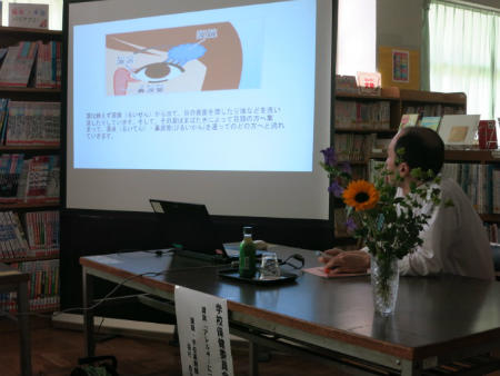 保護者や薬剤師の方に来ていただき、学校保健委員会を行いました。学校からは自校の健康や体力について説明しました。薬剤師様からは、目薬の使用法やエピペンの使い方などアレルギーに関するお話をいただきました。保護者とともにアレルギーや健康を考える良い機会となりました。