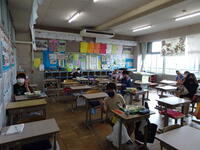 7日(火)から、タブレットを使って「Meet朝の会」が始まりました。オンライン授業に向けての準備です。全校で行うのは初めてのことなので、いろいろな課題もありましたが、「自宅で参加する子」と「教室で参加する子」みんながオンラインで集合することができました。「みんなで学習できる喜び」を分散登校が明けても、覚えていてほしいものです。
