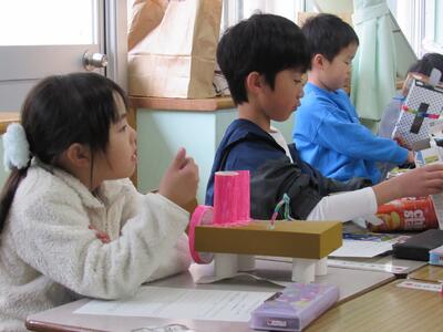 2年生が、図工の作品作りを見せに来ています。