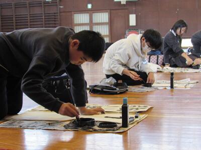 体育館では、6年生の競書会が始まっています。