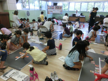 暑さと熱気がむんむんするスタジオ室で、第1回目の放課後子ども教室が楽しく・無事終了しました。コーディネータのの岩本様、ご指導いただいた社会教育課の先生方、ご協力いただいたPTAの皆様、本当にありがとうございました。