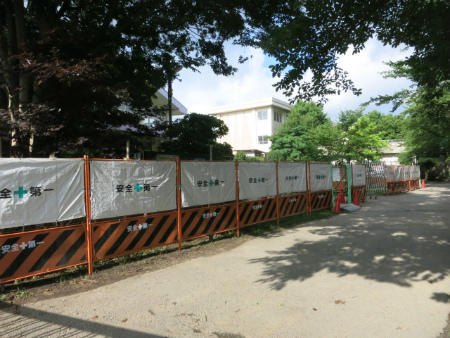 先日の土曜日、体育館の仮囲いの工事がありました。本校では、児童棟の外壁工事のほかに、体育館のトイレの改修工事も行われます。夏休みに入って本格的な工事となります。それに向けて資材や今の便器の撤去作業なども入ってきますので、仮囲いの中に入らないよう、今一度ご指導をお願いします。
