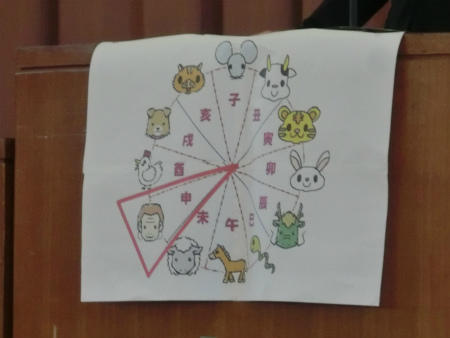 始業式の校長式辞では、申年の「申」の意味(伸びていくこと)、お年玉の由来(今年もしっかりと頑張ってほしいという願い)について、また、挨拶をさらに頑張っていこう!という話をしました。