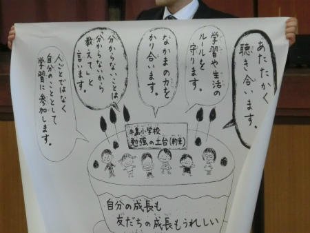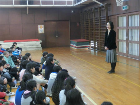 始業式終了後、それぞれの学年で学年主任から子どもたちに、3学期力を入れて取り組んでいくこと等について、熱くメッセージを伝えました。