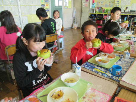 昨日は、夜から明け方にかけ大雪が降り、校庭も一面銀世界になりました。しかし、午前中は雨が降り続き、子ども達が期待していた雪遊びができませんでした。
