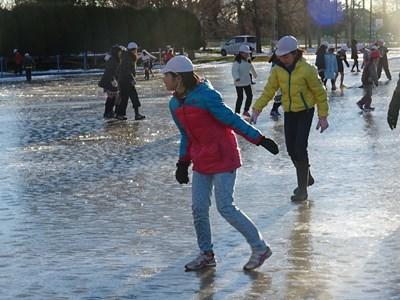 巨大なスケートリンクに子ども達は大喜び、今朝はつかの間のスケートを楽しみました。