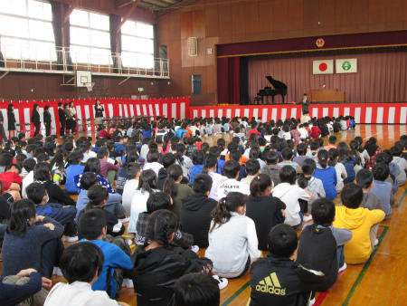 本年度の新1年生は87名です。全校児童484名がそろいました。