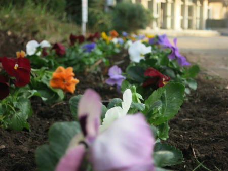 飼育・園芸委員会の子供たちがパンジーを植えました。これからパンジーが成長していくのが楽しみです。