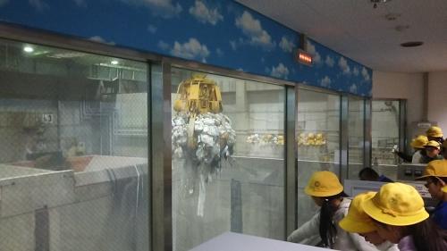 ゴミをためる部屋です。中ではごみクレーンが動いています。奥にみえる黄色いものは、中から助け出されたプーさんだそうです。