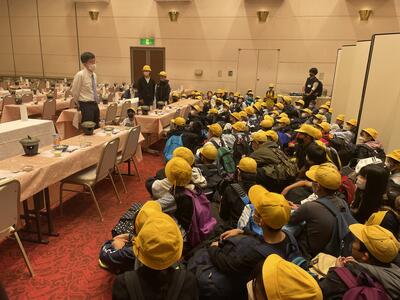 バスは、無事にホテルに到着し、ただいま入館式です。