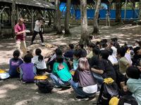 子供達は飯盒炊爨の説明を真剣に聞いています。