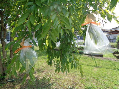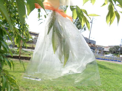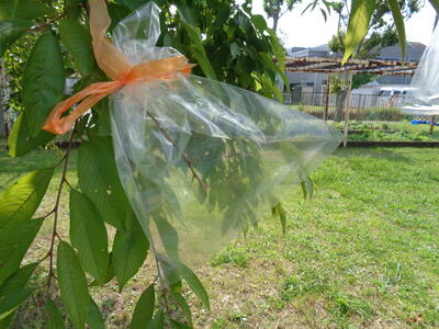 職員玄関正面の木に、理科の実験と思われる光景が。