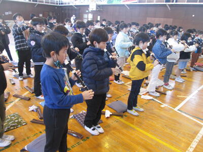 本日2校時に体育館で3年生がリコーダー講習会を行いました。