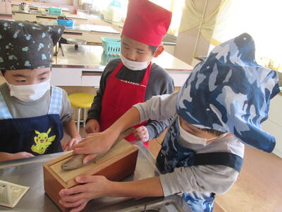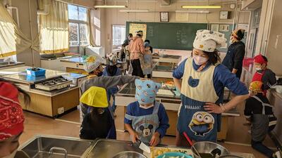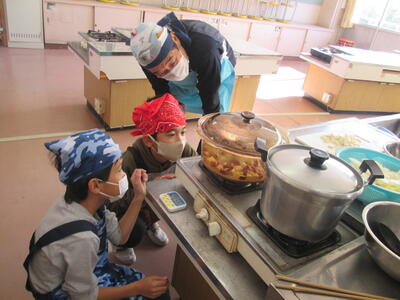 収穫した野菜を使って、2校時からは調理実習をしました。