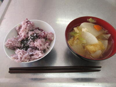 献立は「みそ汁」と「さつまいもごはん」です。