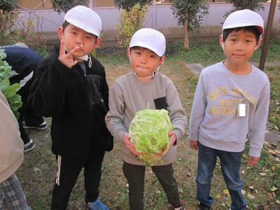 本日5・6組のみんなが、これまで学級の畑で栽培していた野菜の収穫をしました。