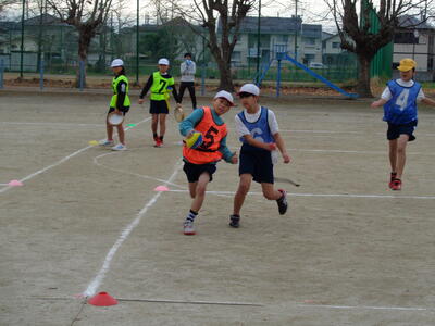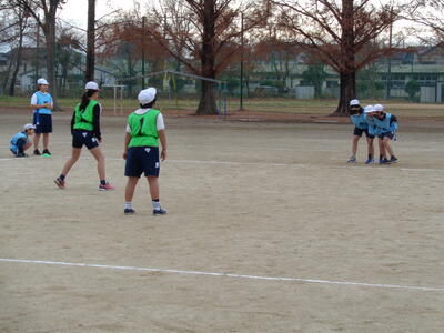 見に行ってみると・・・どうやら5年生が体育で「フラッグフットボール」の授業をしていたようです。