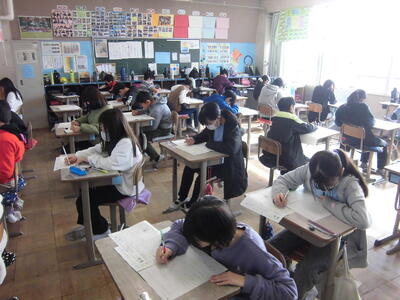 本日、5年生が2・3校時に、市内の5年生対象に実施している総合学力調査に取り組みました。