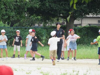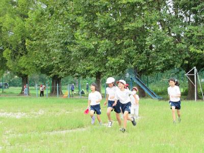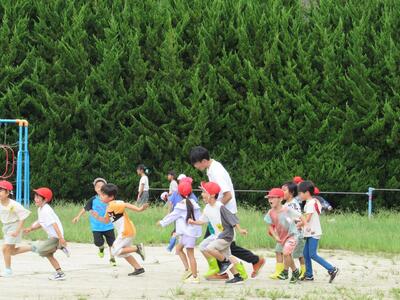教育実習生の先生と楽しく鬼ごっこしているのは、1年生かな?