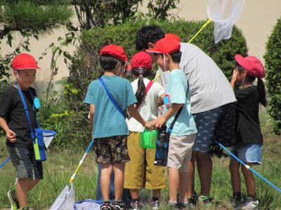 「5年生は、何を見つけたの?」 「カマキリです!!」
