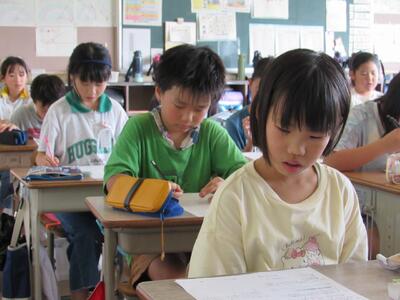 「校長先生、ぼくは漢字の練習をしています。」 「自分でやろうと考えたんだね。」