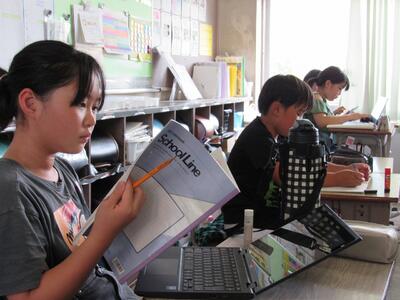 となりの2年生は、文章のまちがいを見つけて、直そうとしていますよ。