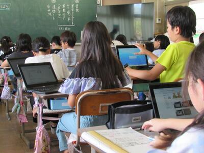 6年生の国語では、プリントに書かれた作文を、よりよい文章にしようとしています。