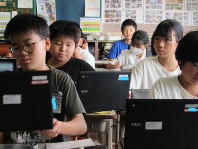 本校では、国語の表現力を、全教科等の学びに生かせる「キー(かぎ)」であるととらえ、全学年で指導の充実を図っています。