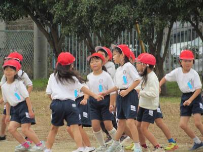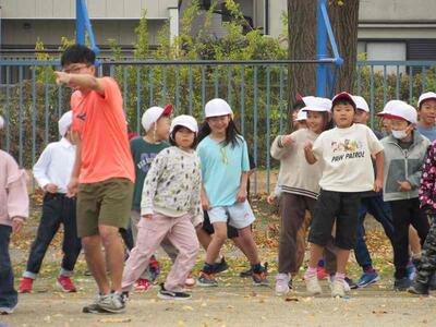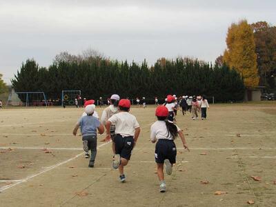 外トラックは、4~6年生が走っています。