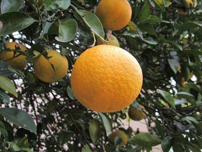 校長室前のみかんが、ここまで黄色くなってきています。