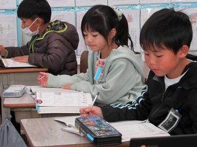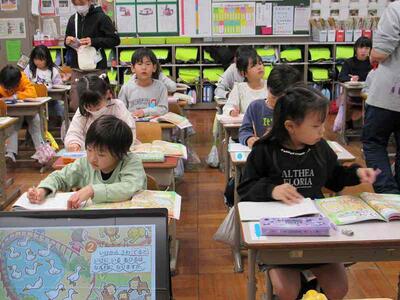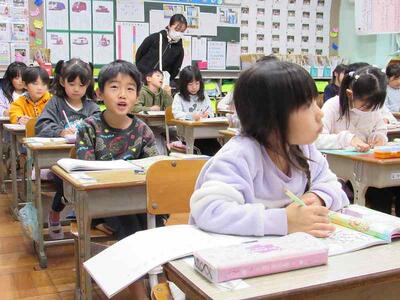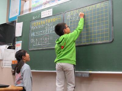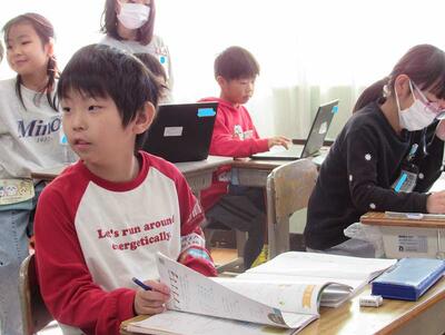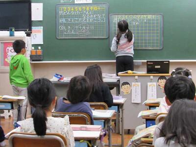 1年生が楽しそうに算数の学びを進めています。