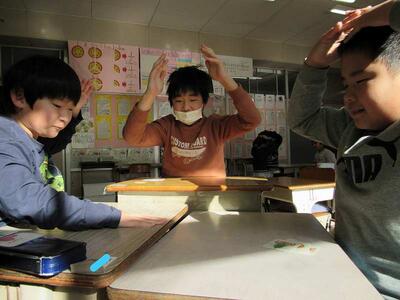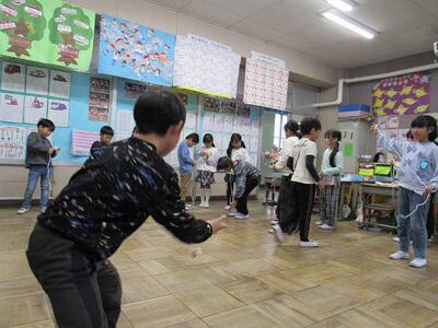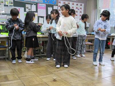 1年生の生活科では、冬の遊びとして、こまで遊んでいますよ。