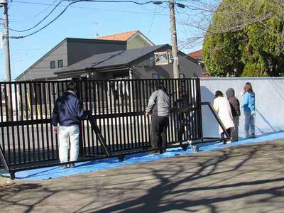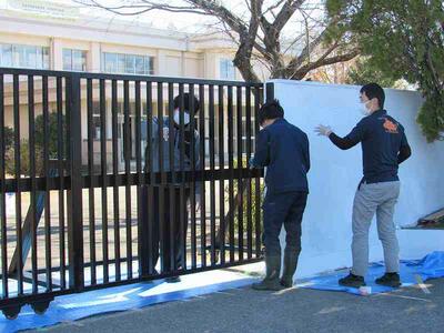 見違えるほど太陽の光に映える正門付近になってきています。